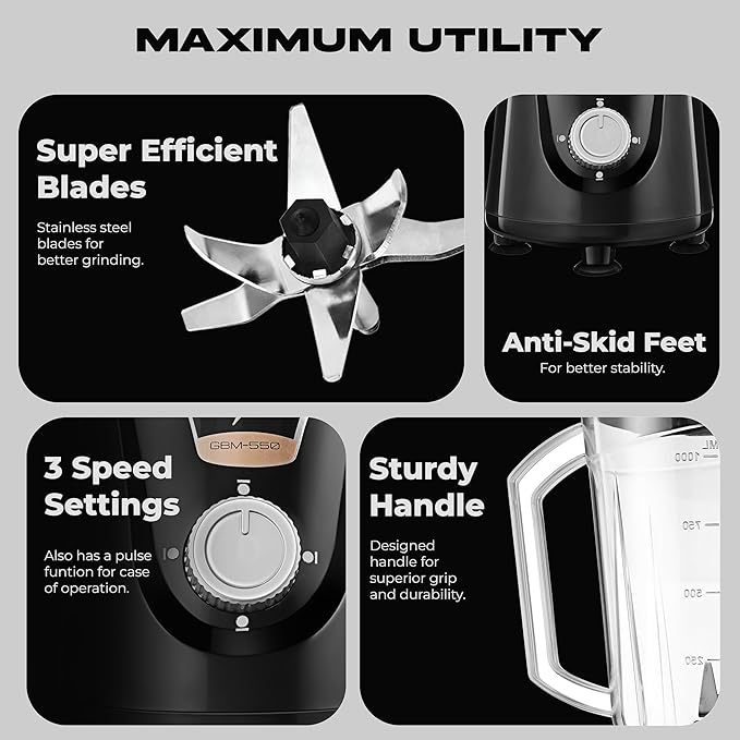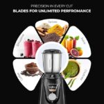 - Built with a 550W heavy-duty motor that supports daily grinding and blending tasks, offering consistent performance for smoothies, purees, chutneys, spices, and other kitchen preparations with ease.