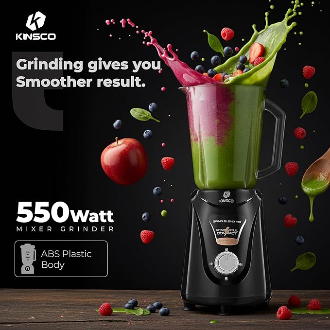 Home > Shop > Mixer Grinder > Kinsco 550W Blender Mixer with 2 Jars | Heavy Duty Motor for Daily Grinding and Blending | Strong Steel Blades | Home and Kitchen | Black (2)