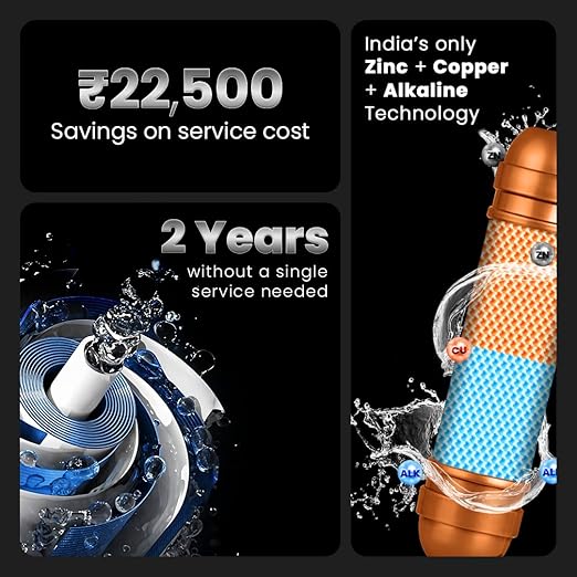- Durable Build: Designed to perform efficiently in Indian households.RO+UV+UF+TDS Controller | Needs no service for 2 years | 2 years Warranty | Copper Zinc and Alkaline | 4-in-1 Health Booster